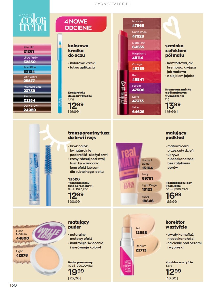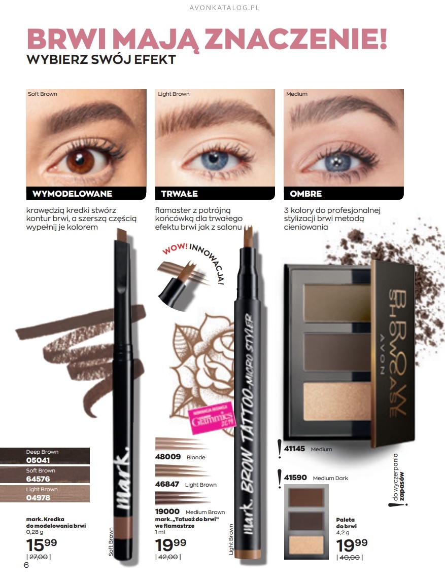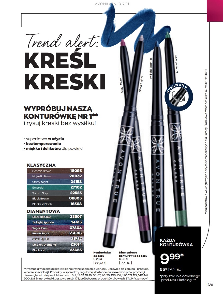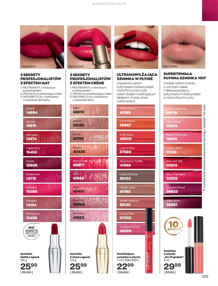 Nowość: Oczywiście, jako pierwszą nowość należy tutaj wskazać wspomnianą już mascarę Legendary Lengths. Tusz pogrubia i wydłuża rzęsy. Jego formuła zawiera polimery, które podczas nanoszenia tuszu gromadzą się na końcówkach rzęs. Mascara kosztuje 24,99 zł. Oferta znajduje się na kilku pierwszych stronach katalogu.