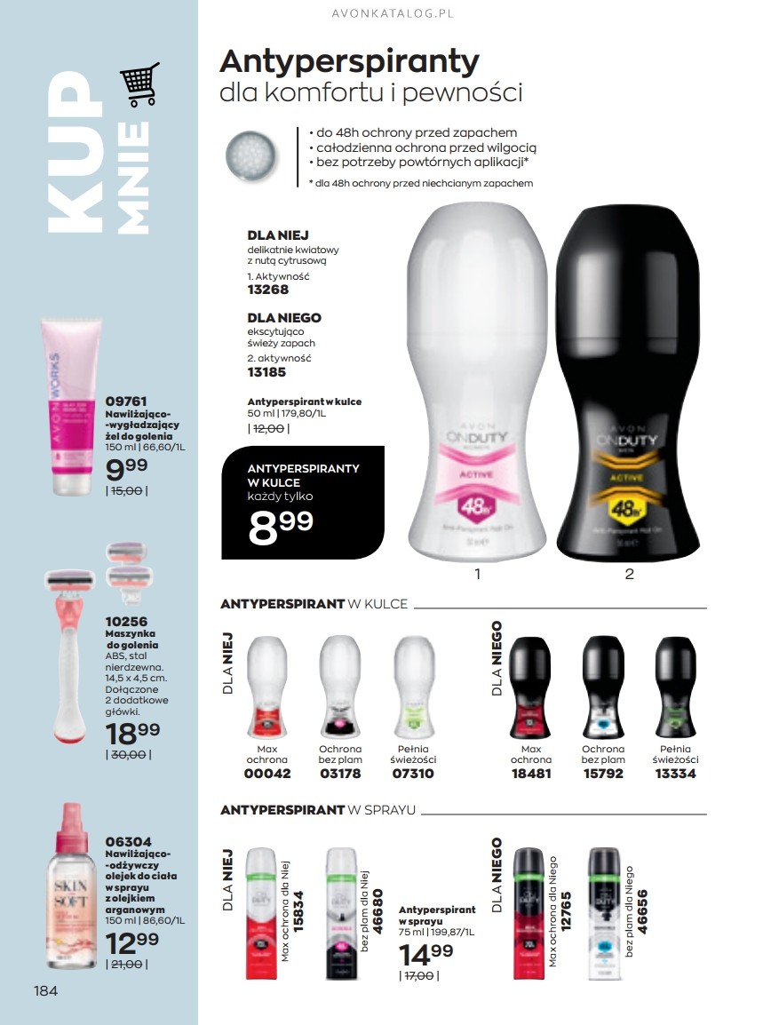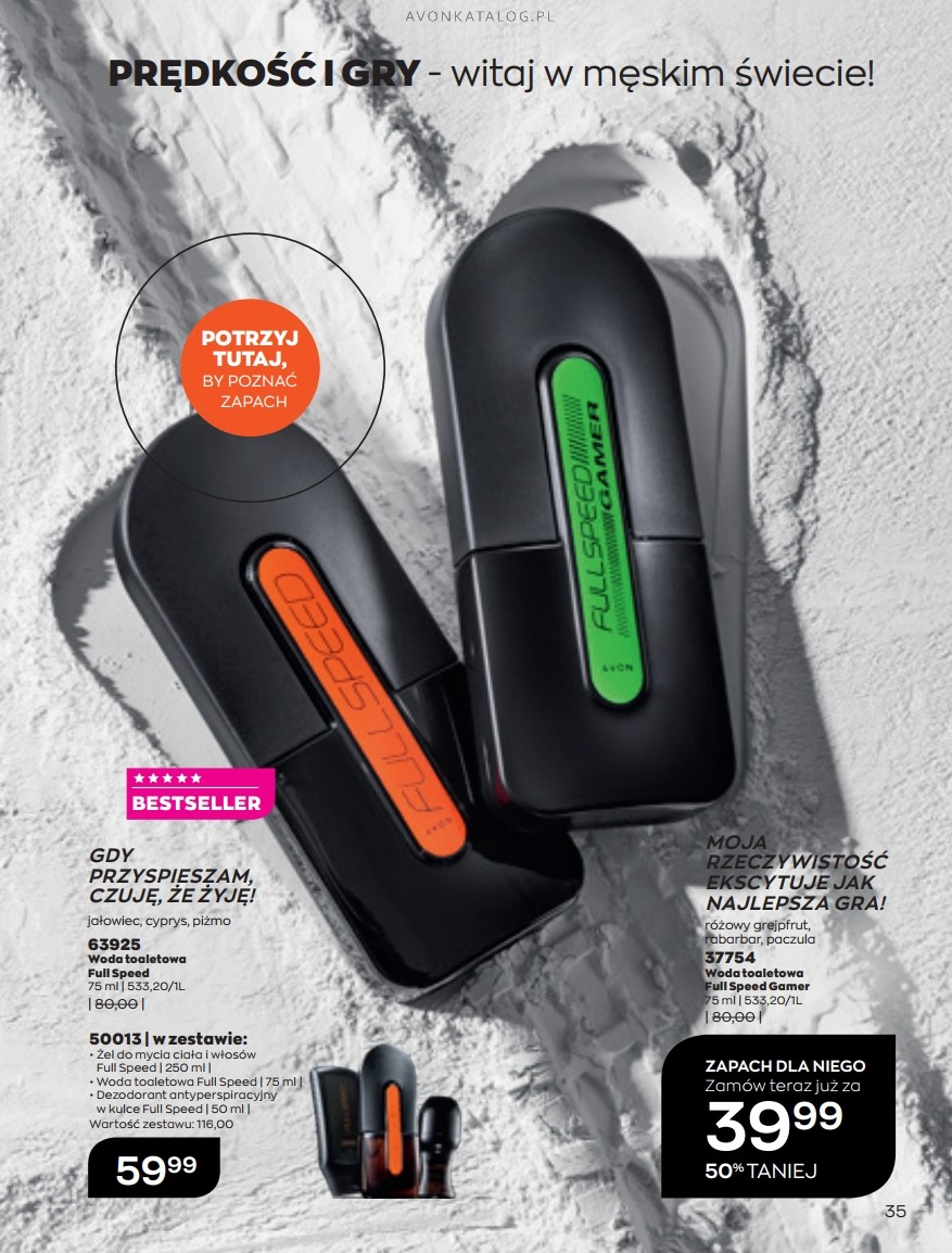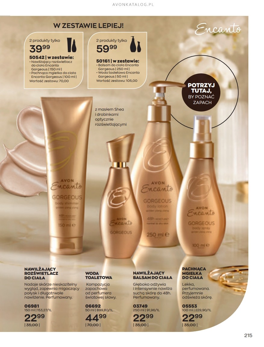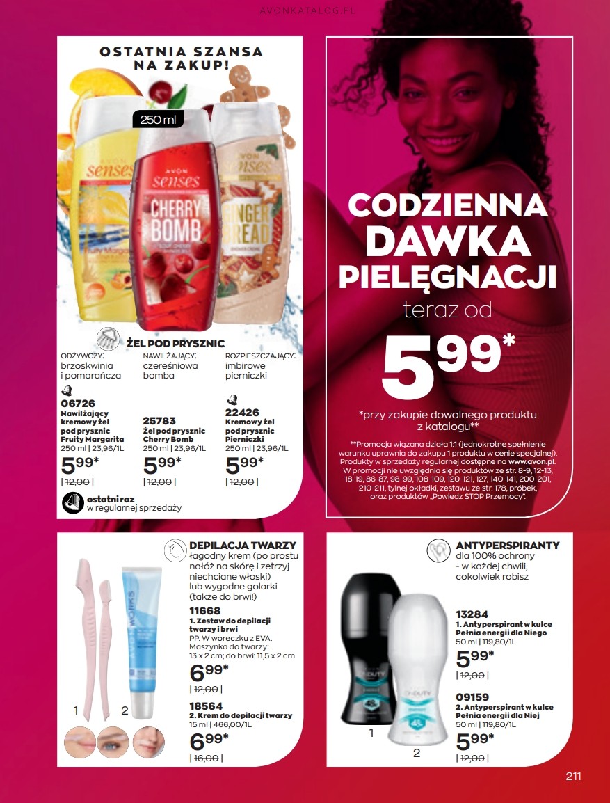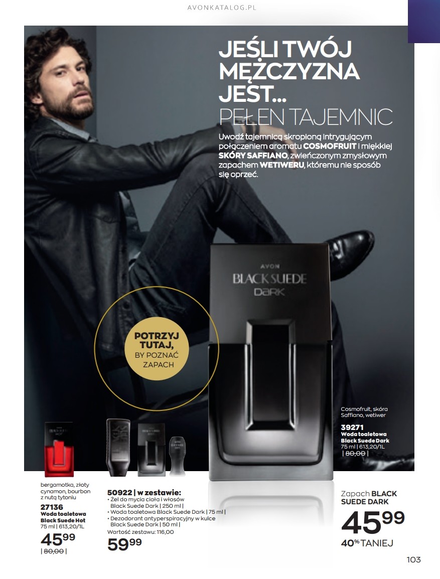 Promocja: Wybrane zapachy dla kobiet taniej przy zakupie 2 sztuk. Z tą ofertą promocyjną możesz zapoznać się na stronach 84-85. Strona 84 przedstawia zapachy dla kobiet o pojemności 50 ml w cenie 39,99 zł każdy. Ze strony 85 zamówisz zapachy o pojemności 30 ml w cenie 29,99 zł każdy. Możesz zamówić dla siebie dwa ulubione zapachy lub kupić jeden dla siebie, a drugi dla bliskiej Ci osoby. Możesz też dogadać się z przyjacielem lub przyjaciółką i podzielić się zamówieniem.