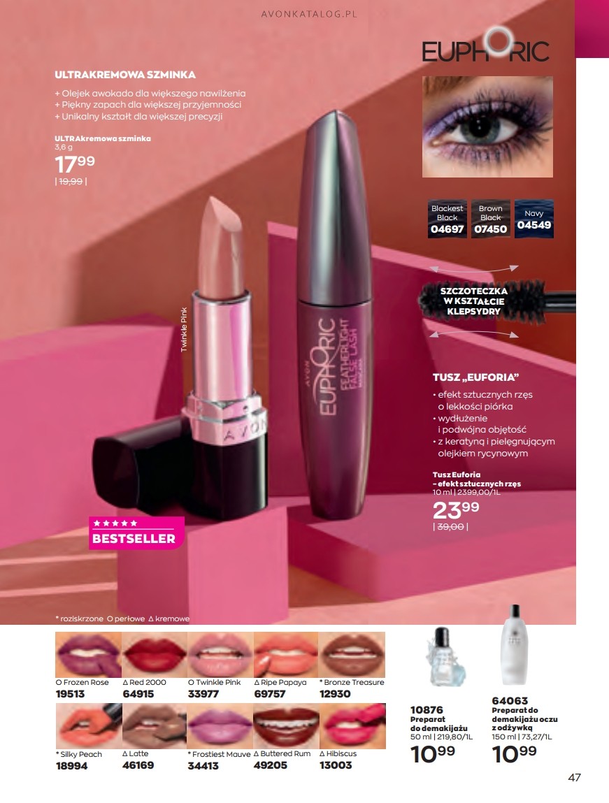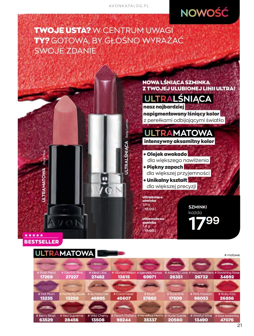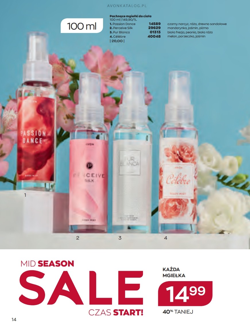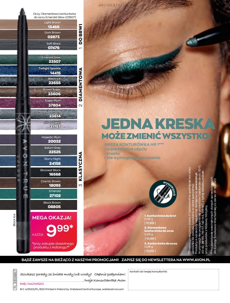 Okres obowiązywania katalogu 4/2022 rozpocznie się 1, a zakończy 30 kwietnia 2022 roku. W tej edycji katalogu z pewnością warto zwrócić uwagę na nowe zapachy pachnących mgiełek do ciała. Jeśli chodzi o kosmetyki Avon, to śmiało można powiedzieć, że pachnące mgiełki do ciała to kultowy produkt tej marki. Mgiełki, w ofercie dostępne są od wielu lat, a skoro z niej nie znikają, to można założyć, że dalej się sprzedają i mają grono wiernych klientek.