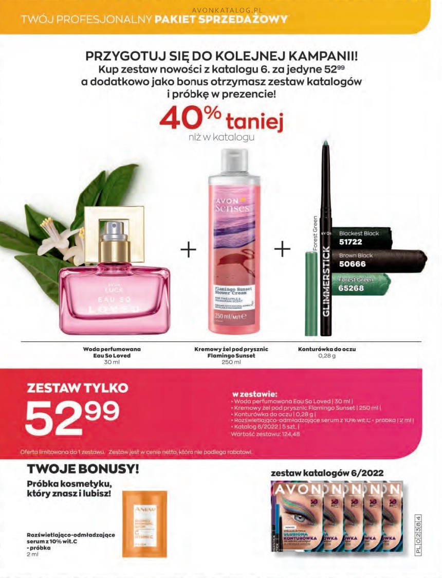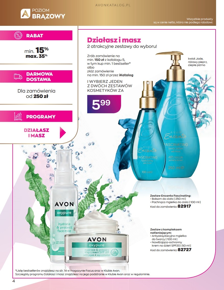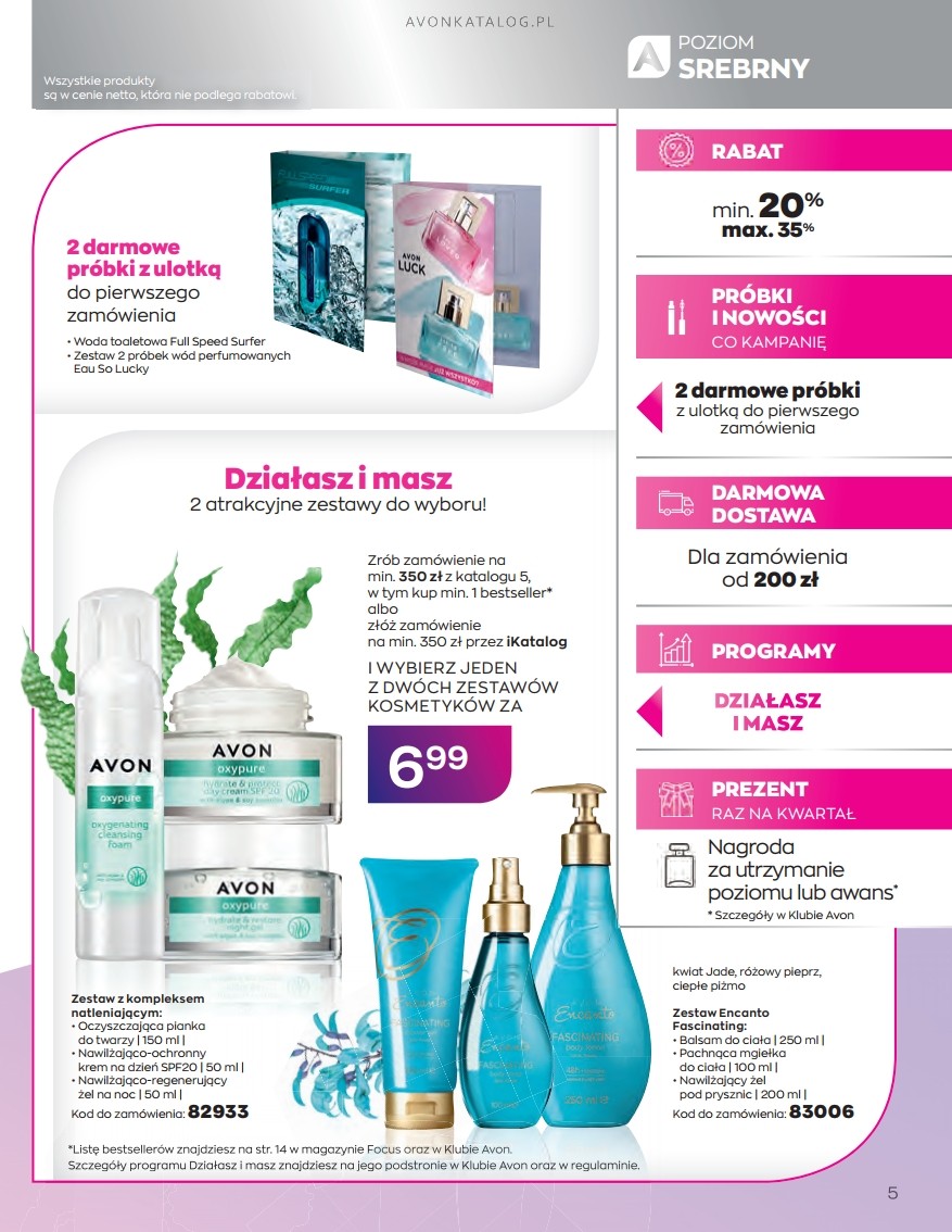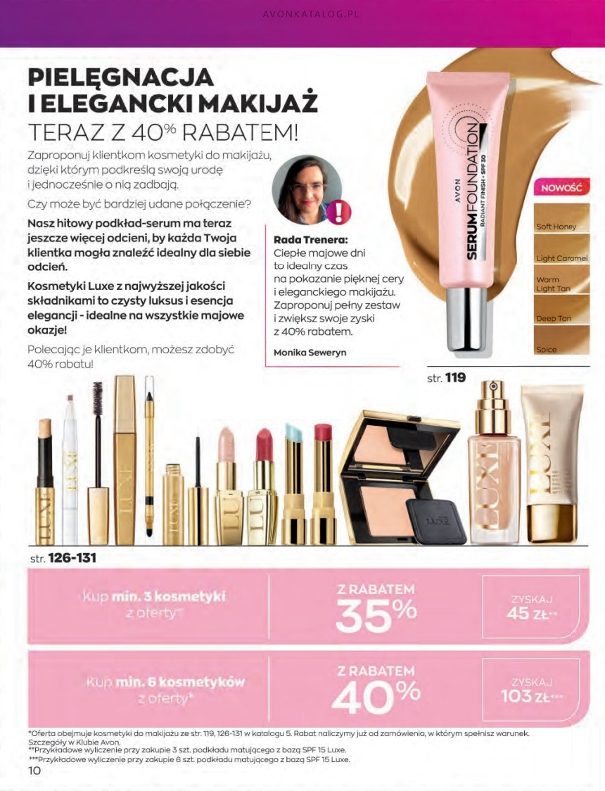 Magazyn Avon Focus 5-2022 – piąte w tym roku wydanie magazynu dla konsultantek i konsultantów Avon obowiązywać będzie w kampanii majowego katalogu, tj. od 1 do 31 maja 2022 roku. W tej edycji magazynu rabaty możesz otrzymać rabaty 35% i 40% na kosmetyki do makijażu z linii LUXE (str. 10). W „demo nowościach” nowy płyn do kąpieli, mgiełka i żel pod prysznic z serii Senses.
