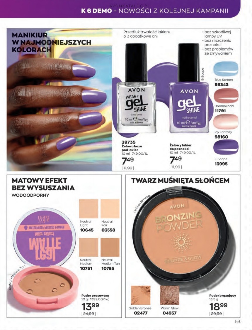 - Puder prasowany – Zawiera ekstrakt z białych szafirów. Dostępny jest w dwóch kolorach.